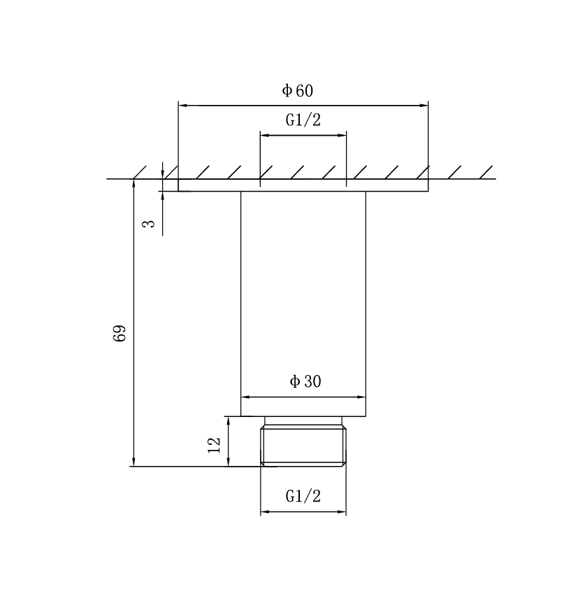 【德國innoci】銅質吊頂花灑接管(鉻色)-NP7401C
