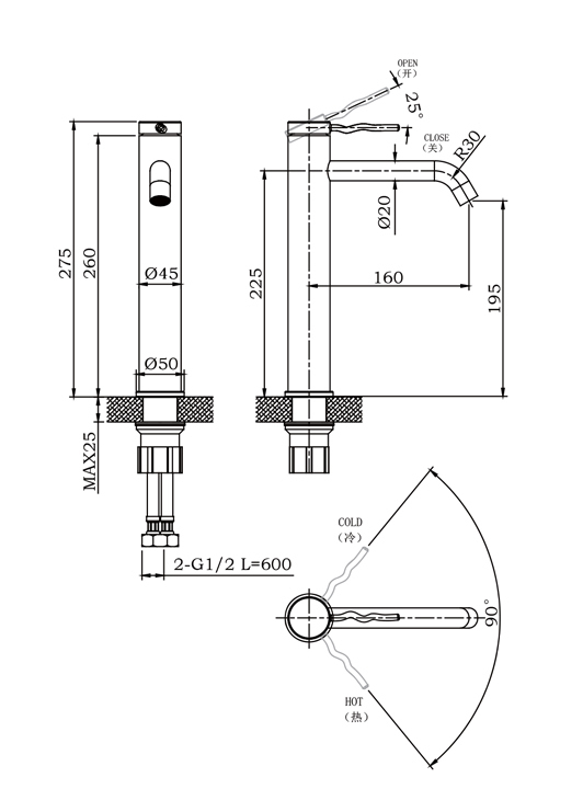 大流量陶瓷閥芯,不銹鋼進水編織軟管