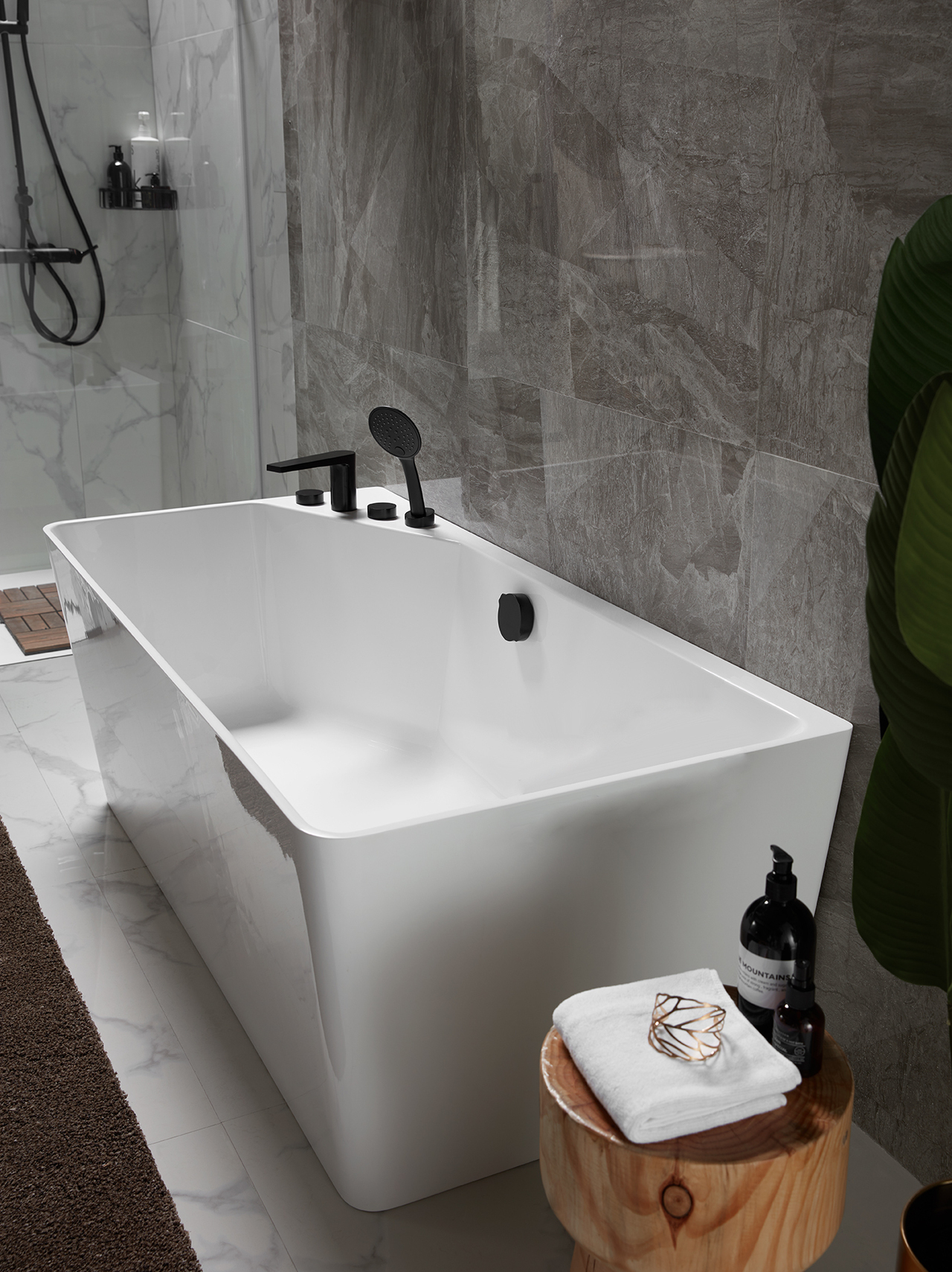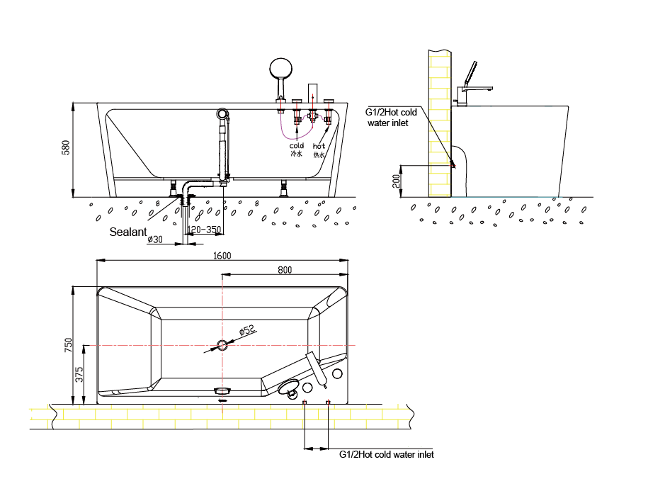 帶溢流功能,銅質去水器黑色和銅質去水器連接管,NF50505K-4四件式浴缸龍頭1套