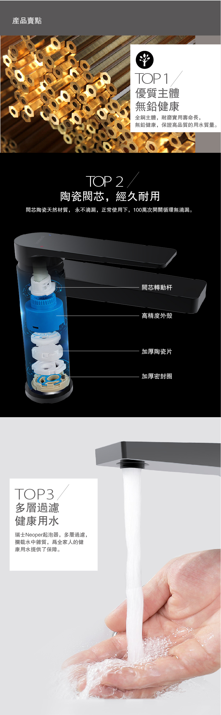 陶瓷閥芯,瑞士NEOPERL節流起泡器,不銹鋼進水編織軟管