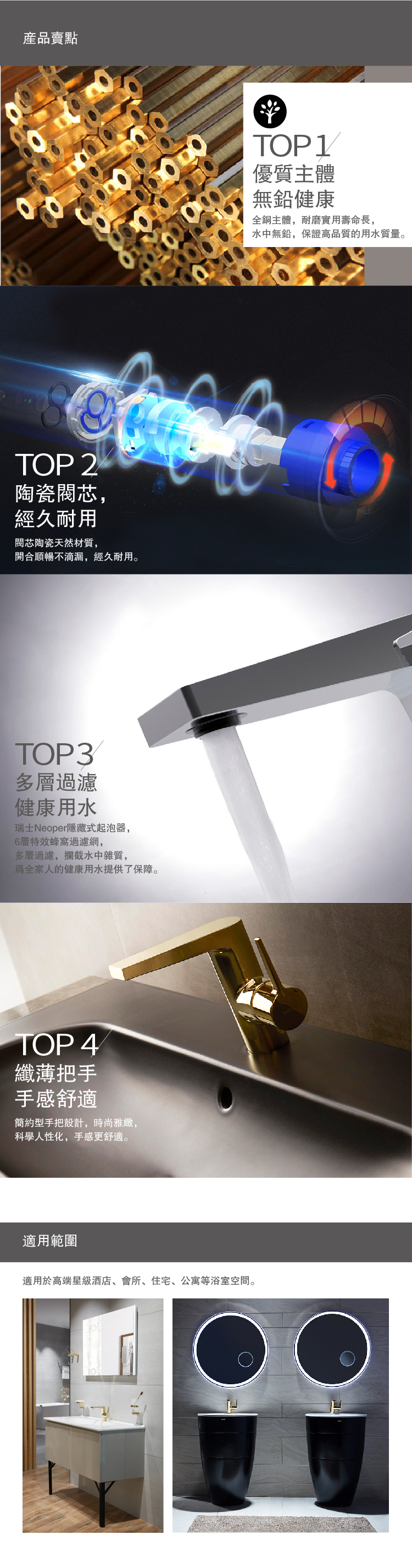 大流量陶瓷閥芯,瑞士NEOPERL節流起泡器,拉桿頭/拉桿條,不銹鋼進水編織軟管