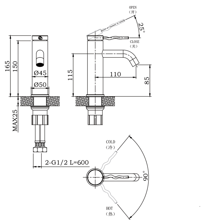 大流量陶瓷閥芯,不銹鋼進水編織軟管,不含排杆