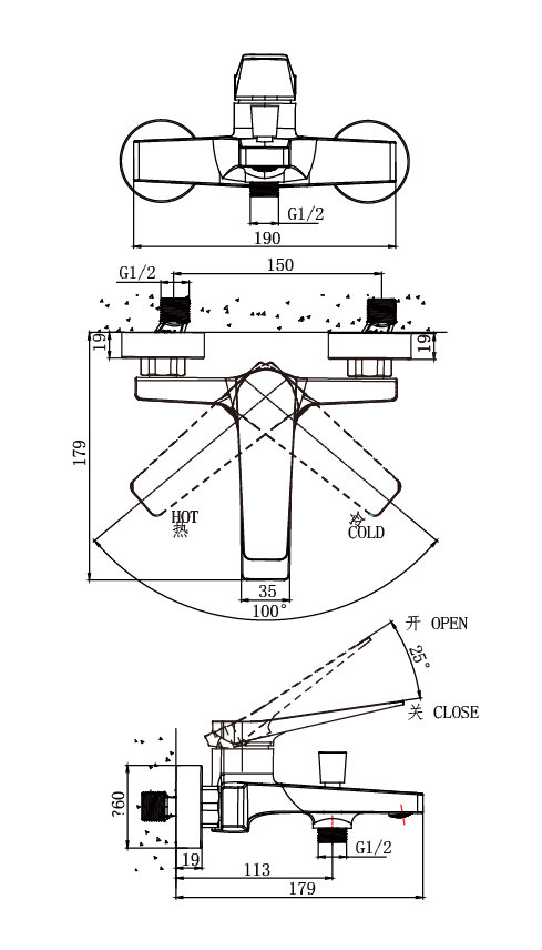 大流量陶瓷閥芯,可搭配不同的花灑組