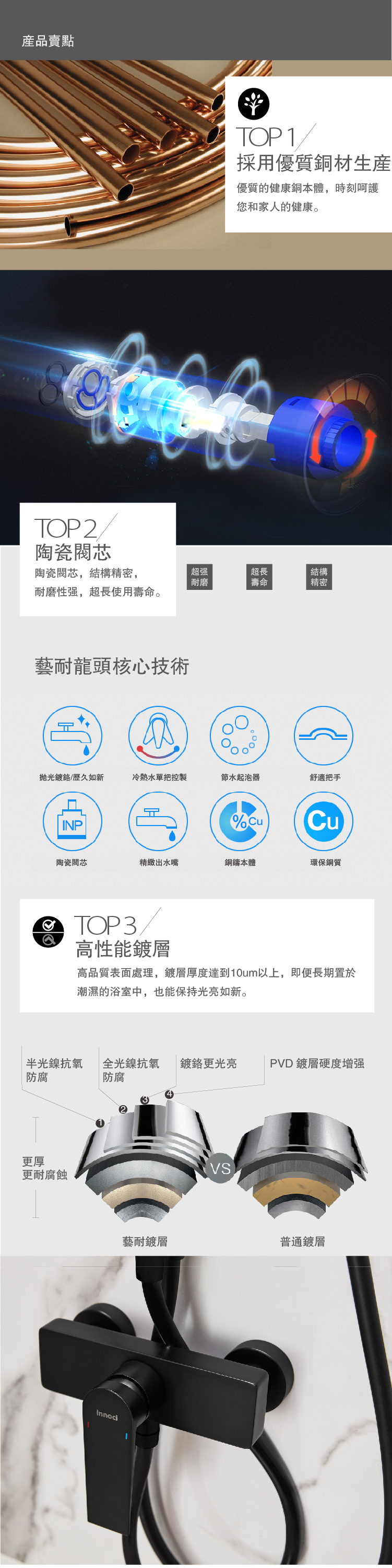 大流量陶瓷閥芯,可自由搭配手持花灑組