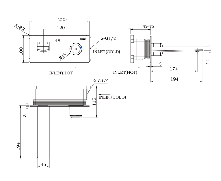 大流量陶瓷按壓閥芯,Neoperl起泡器,帶埋牆盒