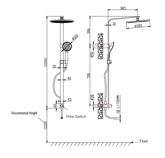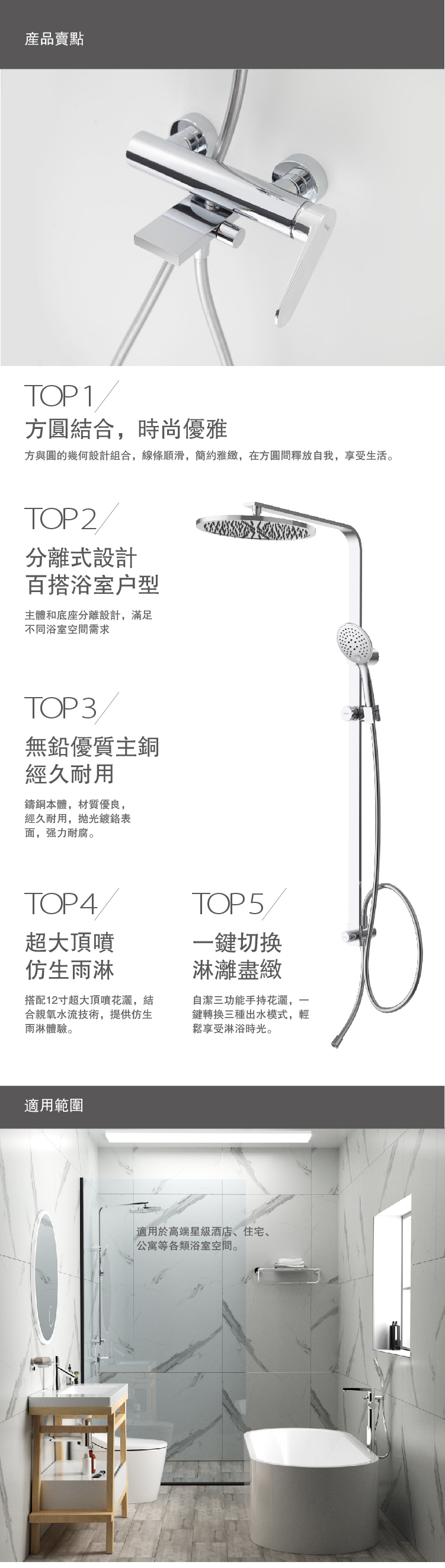 12寸圓型不銹鋼頂花灑,ABS三功能手握花灑