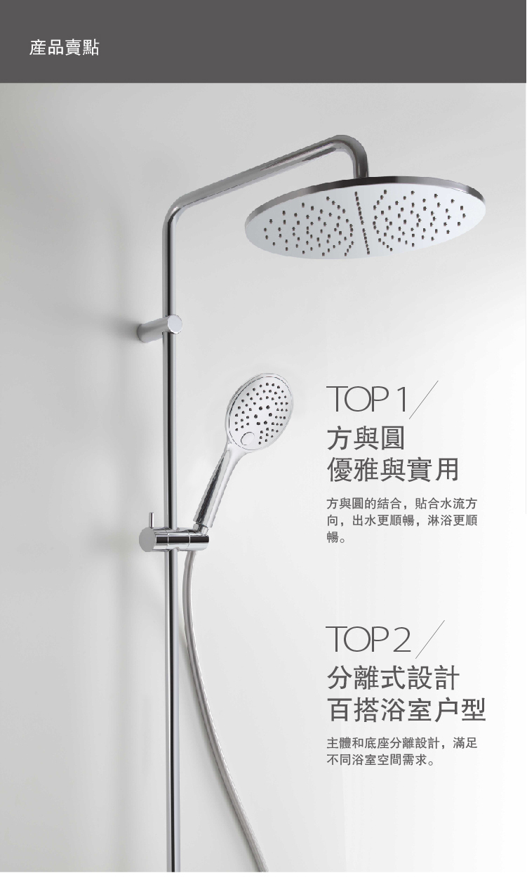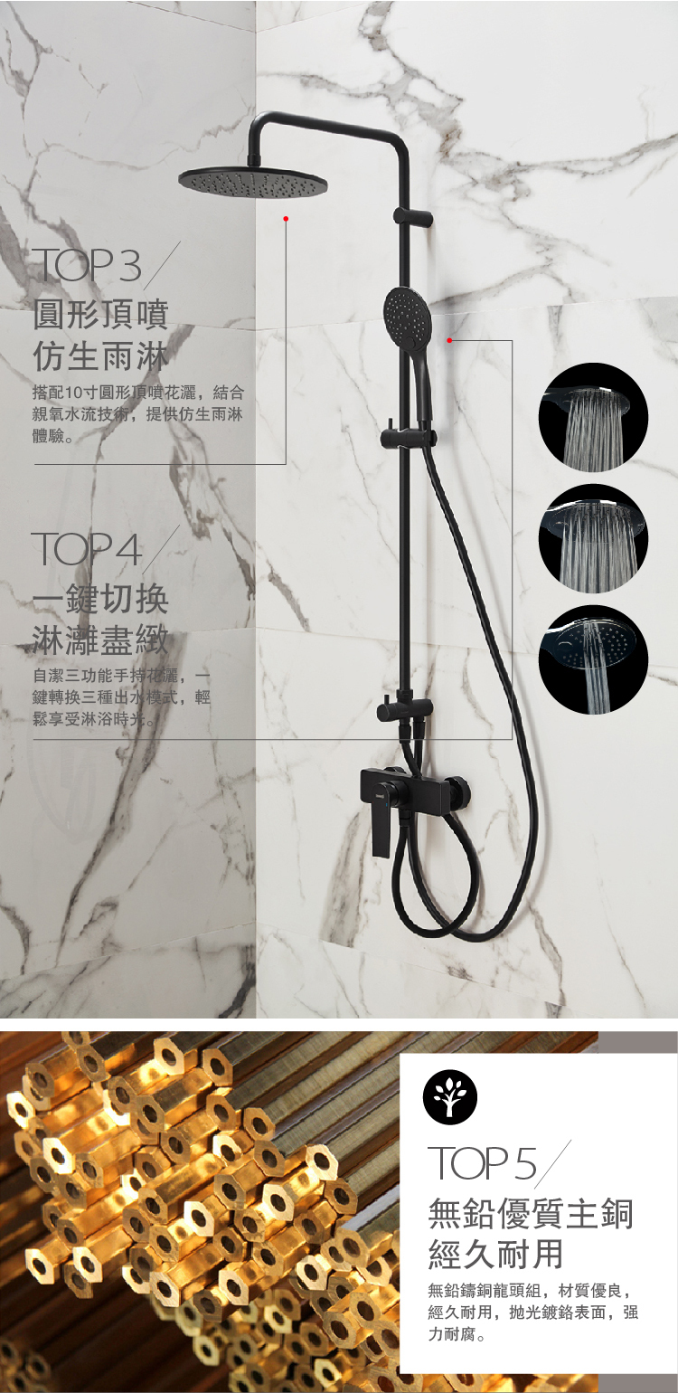 10寸圓型銅質頂花灑,ABS三功能手握花灑