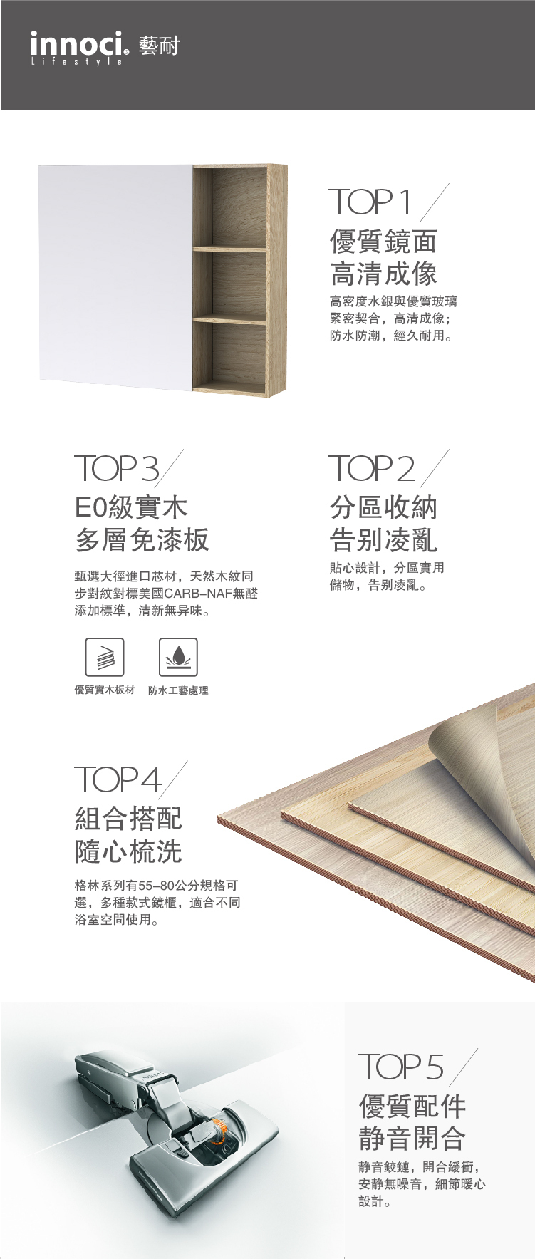 【德國innoci】方型單開門鏡櫃(淺木紋色)