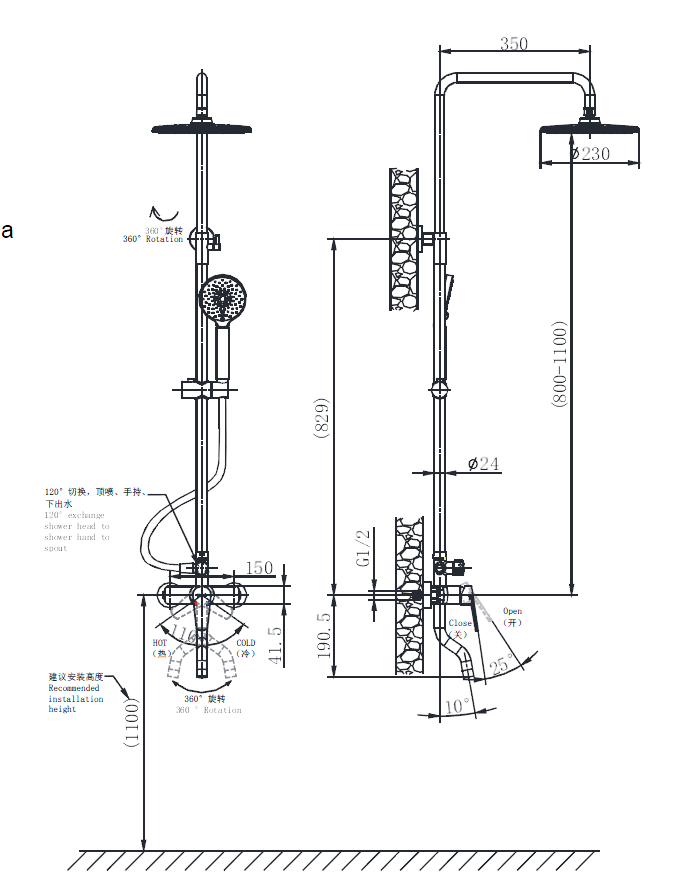大流量陶瓷閥芯 ,含ABS手握花灑,9寸ABS頂噴, 1.5M雙喇叭頭PVC銀色軟管