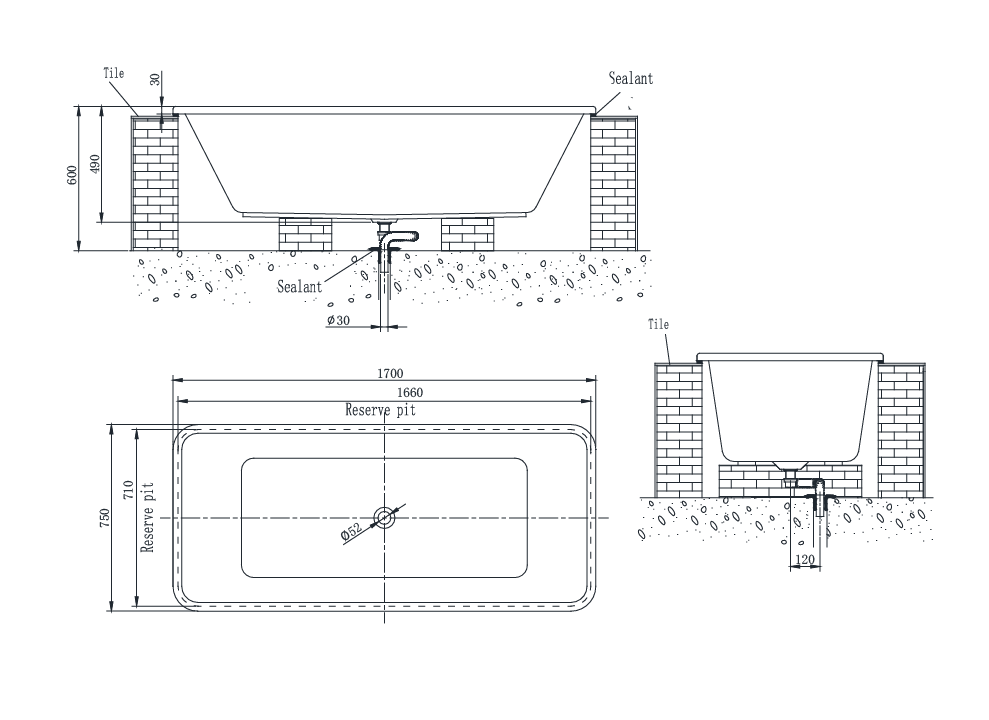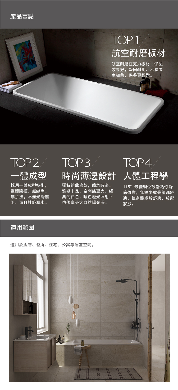 【德國innoci】薄邊1.7米嵌入式檯面浴缸(亮白色)-NB25703W
