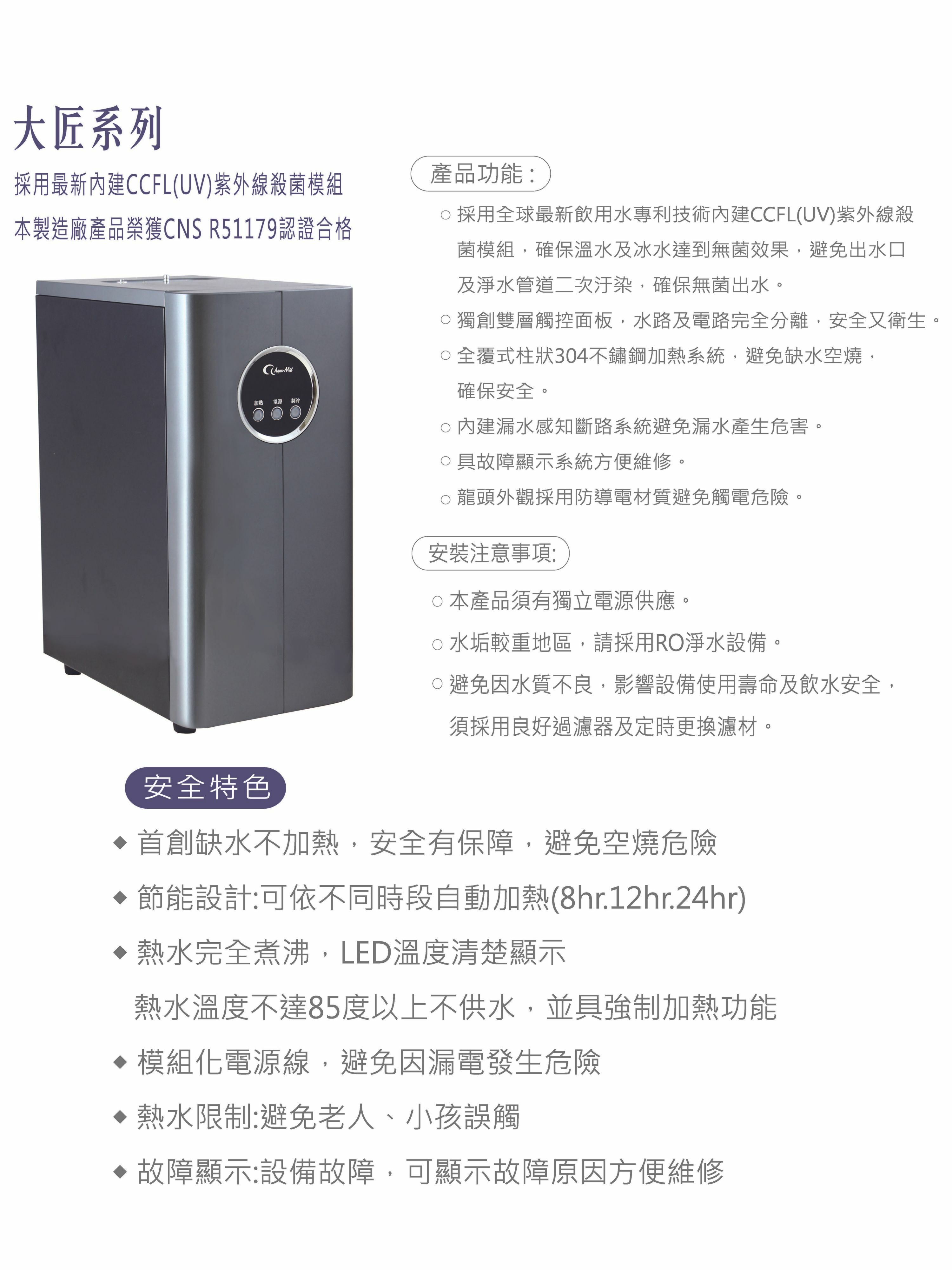 採用最新內建CCFL,確保每一滴水絕對安全。